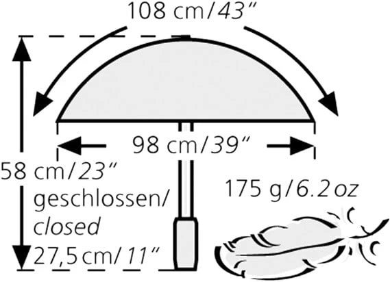 Das Obermaterial ist robustes Polyester mit einer zuverlässigen, stark wasserabweisenden Behandlung. Es kommen weiterhin Carbon und Aluminium zum Einsatz, sodass der Schirm sehr leicht bleibt.