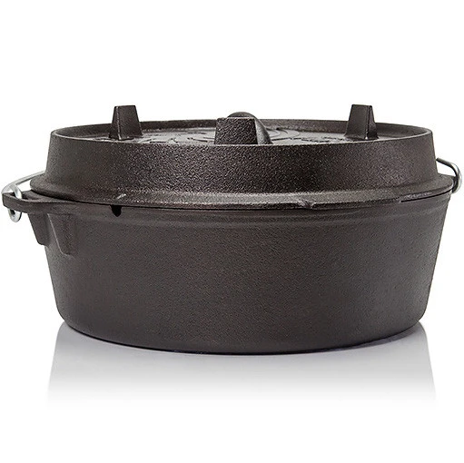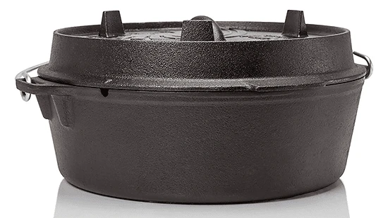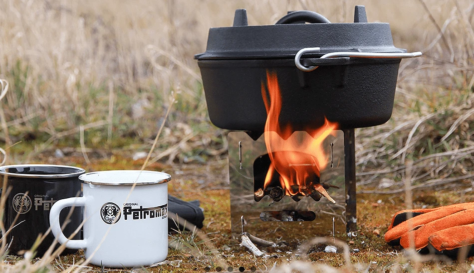 Hier gibt es den Petromax Feuertopf (auch als Dutch Oven bekannt) ohne Füße, also mit planer Unterseite. Das gusseiserne Material leitet Wärme wunderbar weiter und speichert diese. Das Fleisch und Gemüse wird dabei schonend im eigenen Saft mit der besonderen Rundumwärme des gusseisernen Topfes gegart. Der Deckel verfügt über einen erhöhten Rand. Somit kann auch oben auf dem Topf Glut platziert werden und die Hitze kann von allen Seiten kommen. Somit kann man im Feuertopf auch Brot backen.