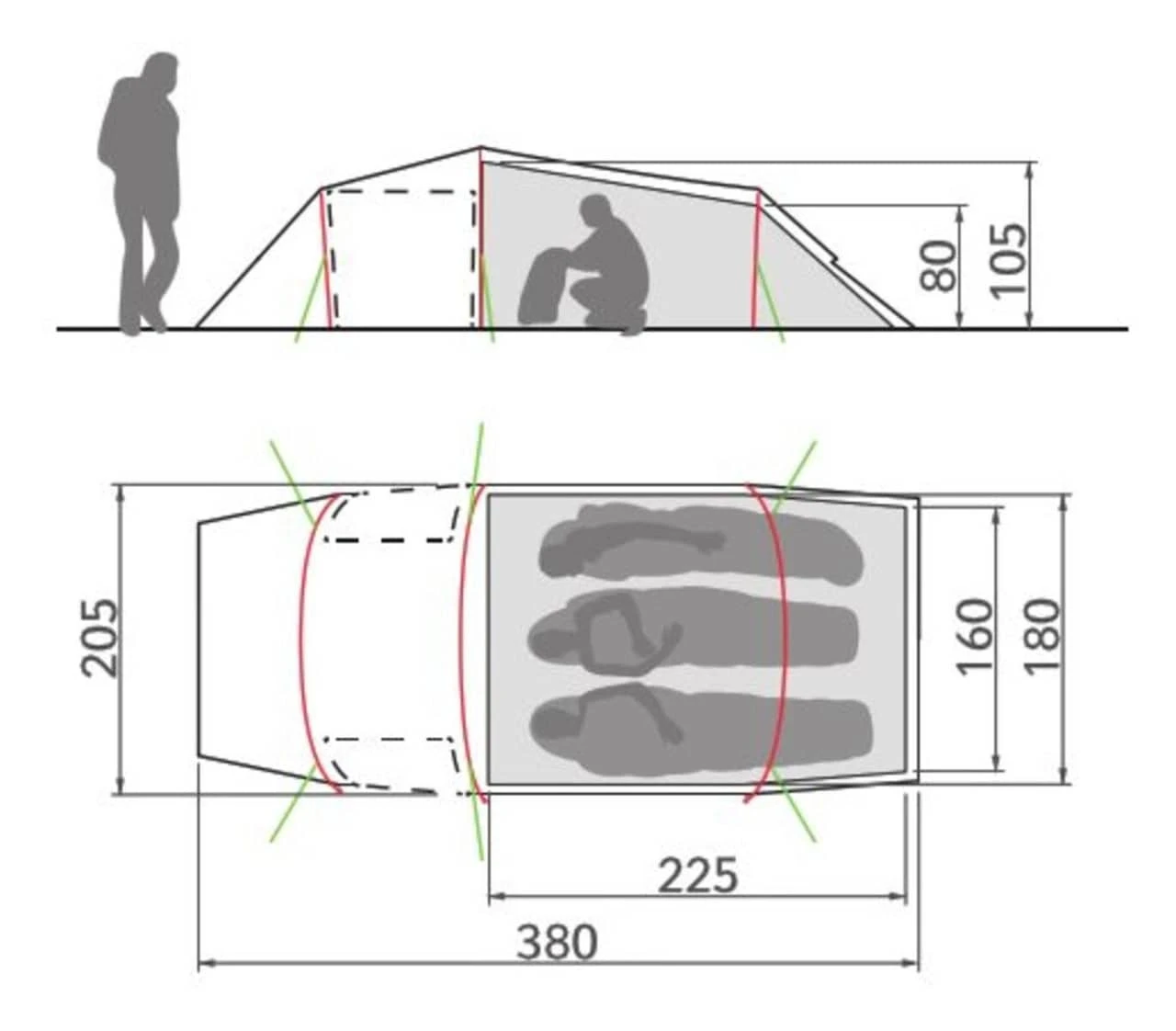 Dein behagliches Zuhause für unterwegs: geräumiges 3-Seasons Tunnelzelt für 3 Personen, mit erweitertem Vorraum für deutlich mehr Komfort und Platz. Der große Innenraum bietet viel Schlafplatz und großzügige Verstaumöglichkeiten für die Trekkingausrüstung und ist über die Öffnungen in Apsis und Fussbereich angenehm belüftet. Das Arco XT 3P ist schnell aufgebaut und nimmt auch schlechtes Wetter nicht krumm. Das ideale Einsteigermodell für Trekkingtouren in gemäßigten Klimazonen.